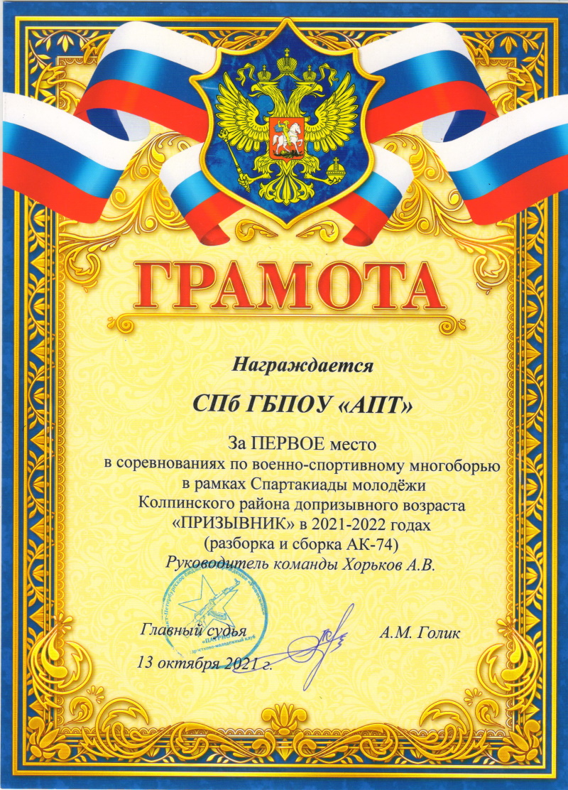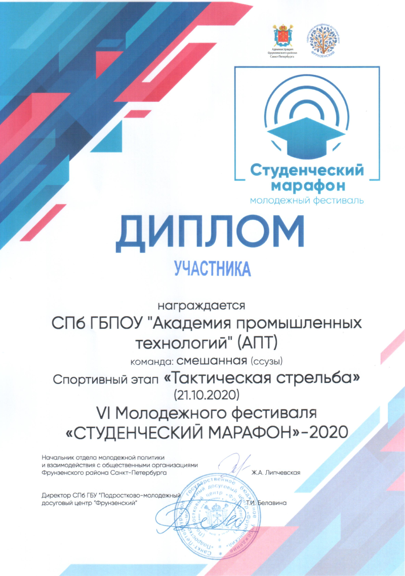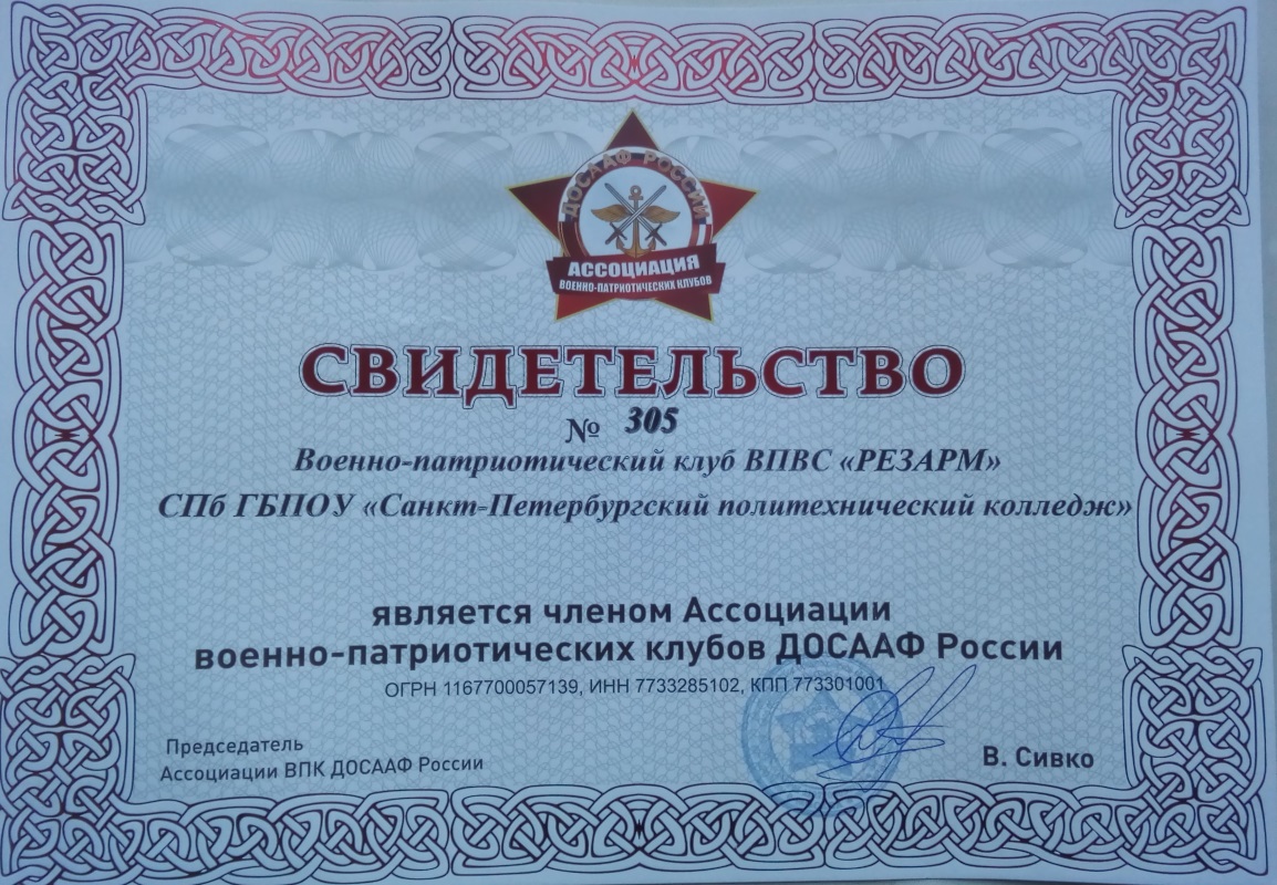 На базе постоянно действующей стрелковой секции академии в октябре 2017 (Приказ № 304 от 30.10.2017) года создан военно-патриотический клуб ГБПОУ АПТ ВПК «РЕЗАРМ Z» 14 марта 2018 года решением Правления Ассоциации ВПК ДОСААФ России военно-патриотический клуб ВПК «РЕЗАРМ Z» государственного бюджетного профессионального образовательного учреждения «Академия промышленных технологий» был принят в члены Ассоциации ВПК ДОСААФ России.
