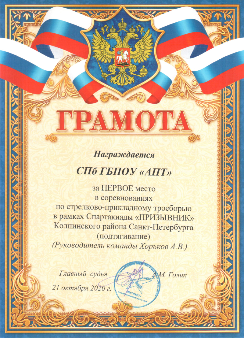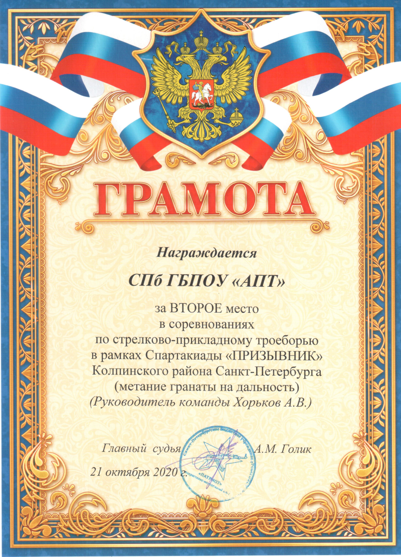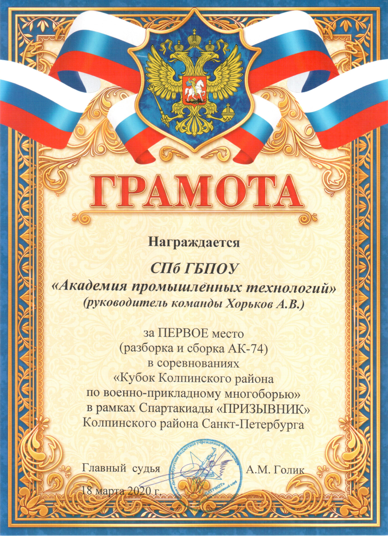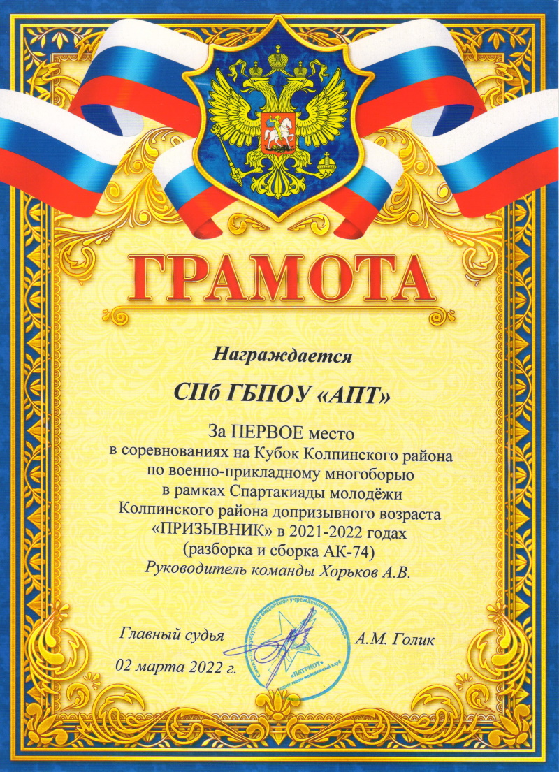 На базе постоянно действующей стрелковой секции академии в октябре 2017 (Приказ № 304 от 30.10.2017) года создан военно-патриотический клуб ГБПОУ АПТ ВПК «РЕЗАРМ Z» 14 марта 2018 года решением Правления Ассоциации ВПК ДОСААФ России военно-патриотический клуб ВПК «РЕЗАРМ Z» государственного бюджетного профессионального образовательного учреждения «Академия промышленных технологий» был принят в члены Ассоциации ВПК ДОСААФ России.
